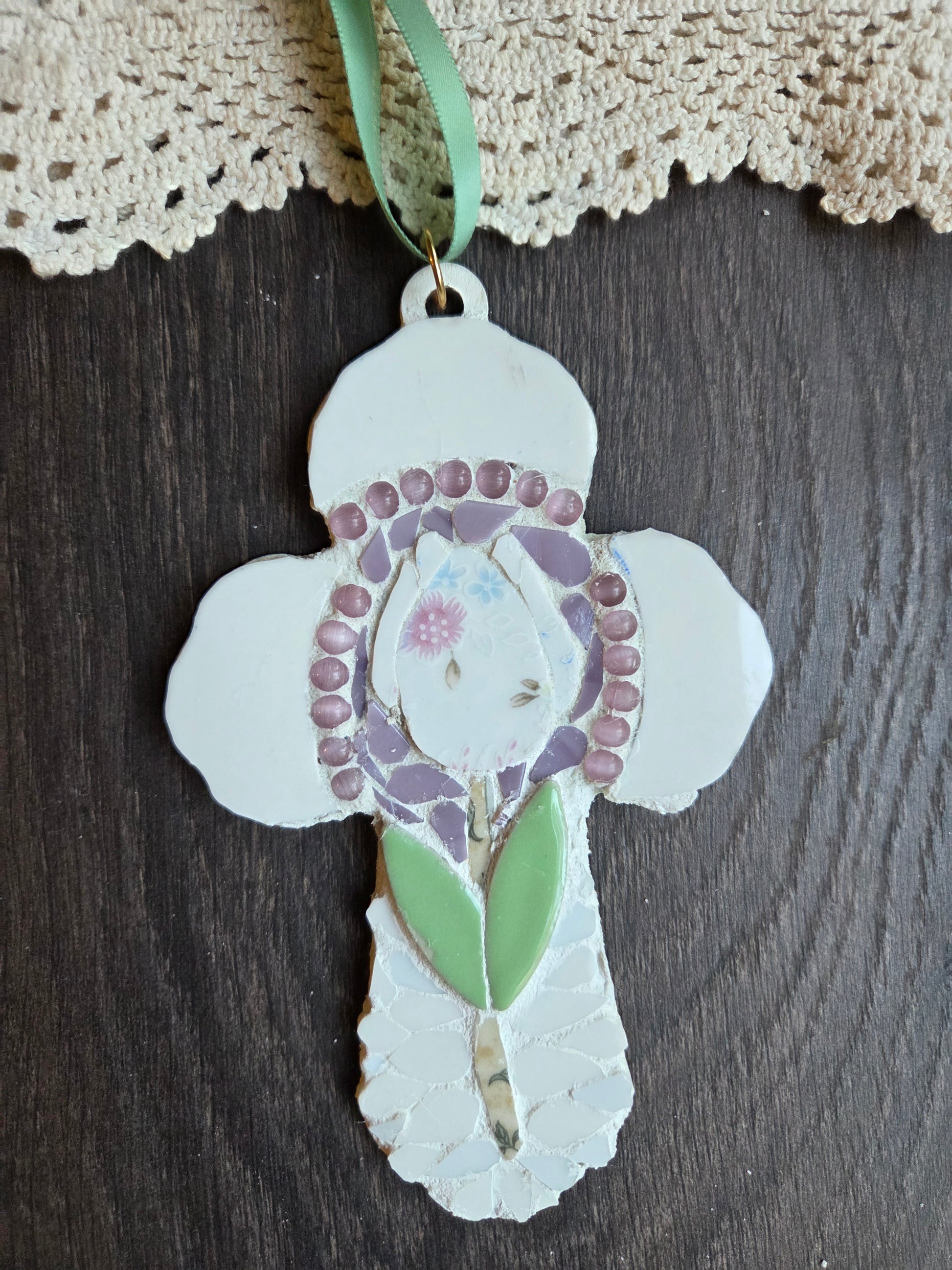 Broken china tulip cross